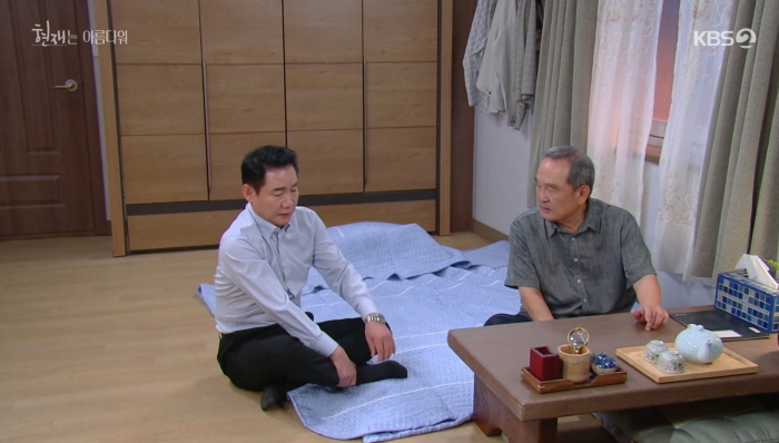 대화가 격해지자 한경애가 들어와 ‘아버님께 이러는 건 아니’라고 말립니다. 평범한 전업주부 한경애는 남편 이민호에 비해 이해심이 부족해 보였는데 현재는 아름다워 40회 줄거리에서는 어른스럽네요. 한경애는 이민호와 이경철에게 ‘이민호가 아버지를 사랑하고 믿으니까 아버지에게 자기 힘들다고 치대는 거’라고 위로합니다. 한경애의 위로가 따뜻해서 좋았습니다.