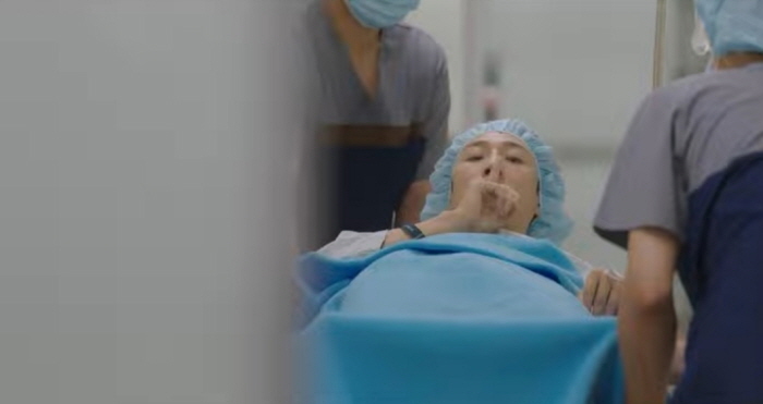침대에 누워 수술실으로 들어가며 어머니께 걱정말라는 정명석 변호사. 우영우가 복도에서 뛰어 달려오며 “정명석 변호사님~ 정명석 변호사님 보고 싶어서 왔습니다. 수술하다 죽으면 다시는 볼 수 없으니까요.”