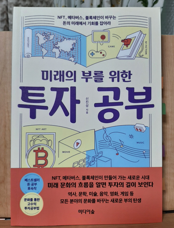 안녕하세요? 책 소개하는 친구 올리브나무입니다. 신진상님의 『미래의 부를 위한 투자 공부』(미디어숲, 2022. 8. 30.)는 경제.경영 분야 경제 전망서입니다. 책 내용을 한마디로 요약하면 ‘NFT, 메타버스, 블록체인과 미래 문화 흐름을 알면 투자의 길이 보인다’입니다.