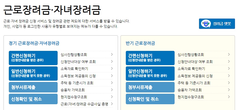 기타 국세청 홈페이지의 복지이음 배너 '근로·자녀장려금'에서 '신청하기'·'일반신청하기'로 가서 신청하면 됩니다.