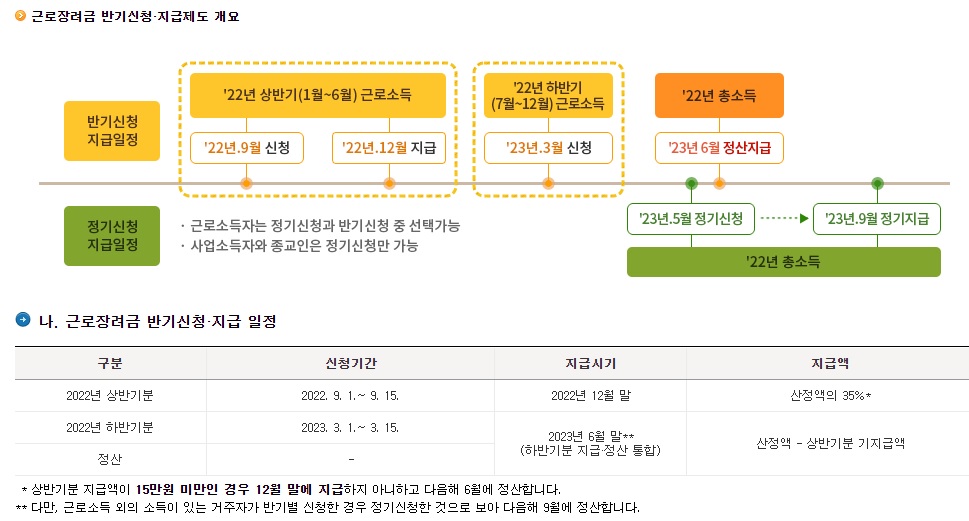 2022년 근로장려금 상반기 지급일 : 2022년 12월 중