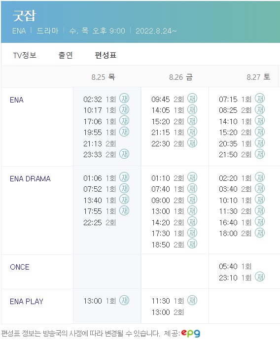 굿잡 재방송 편성표