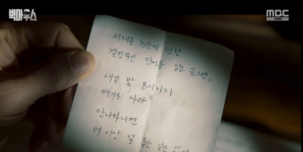 최도하 구천시장은 장혜진에게서 진짜 서교수 논문이 든 메모리칩을 건네받습니다. 장혜진은 가짜 가까 논문이 든 메모리칩을 공지훈에게 건네면서 그 과정을 몰래 카메라에 담습니다.