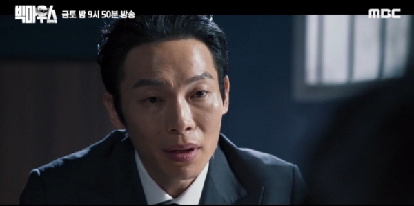약속 시간에 박창호의 뒤로 누군가 등장하는데 화면은 신발과 종아리까지만 보여줍니다. 뒤 돌아본 박창호의 놀란 표정을 클로즈업하며 빅마우스 9회 줄거리가 끝납니다.