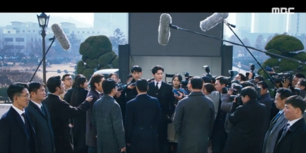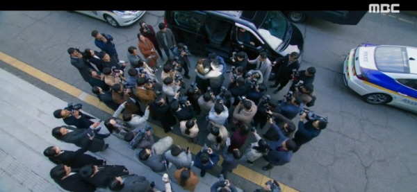 유튜브 라이브 방송이 송출되던 대형 스크린 차가 열리면서 드라마처럼 진짜 박창호가 등장합니다. 검사지만 공지훈에게 매수돼서 살인 용의자 편이었던 검사에게 “확실한 증거가 있으니 항소하셔야죠?”라고 도발하는 박창호.