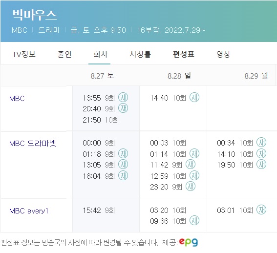 빅마우스 재방송 편성표