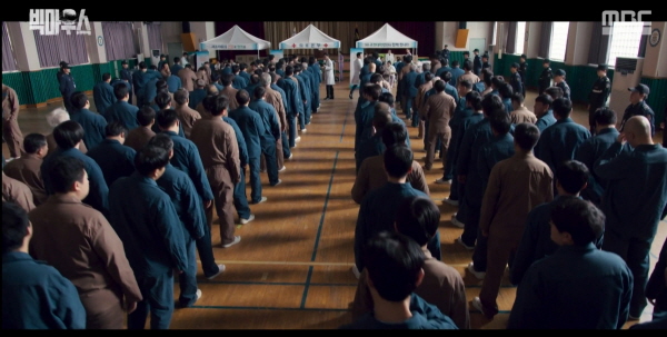 한편 박창호는 빅마우스의 정체를 밝히기 위해 ‘서교수의 논문 내용이 알고 싶으면 내일 이 시간에 직접 나오라.’는 메시지를 남깁니다. 박창호는 한밤중에 모범수들이 부역 나가는 것을 목격하고 의아해합니다.