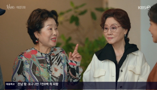 자식들 집에서 만난 한경애와 진수정은 어색하기 그지없습니다. ‘할 말이 없네.’, ‘그만 집에 가자고 할까?’, ‘정말 어색해.’ 요즘 둘의 속마음이 소소한 웃음 코드입니다.
