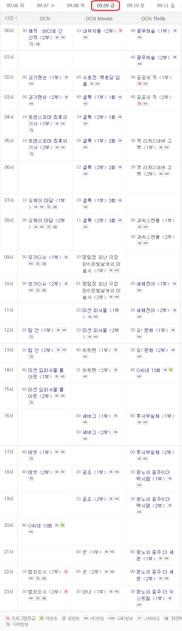 2022 추석 특선영화 편성표 9월 9일 금요일