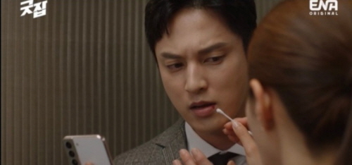 강태준이 화를 내며 나가자 돈세라도 무언가를 챙겨 따라나갑니다. 엘리베이터에 같이 탄 두 사람. 도청 카메라로 지켜보던 은선우도 엘리베이터를 타려고 합니다. 구두를 디밀어 엘리베이터를 붙잡은 은선우, 그런 은선우의 발을 밟아 엘리베이터를 출발 시킨 돈세라. 돈세라는 강태준의 상처 난 입술에 치료제를 발라줍니다. 아무리 작전이지만 ‘애정’이나 ‘사랑’의 감정을 유발하고 배신하는 건, 저급합니다. 그 대상이 빌런일지라도.
