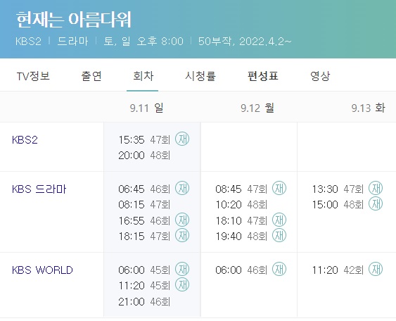 현재는 아름다워 재방송 시간표