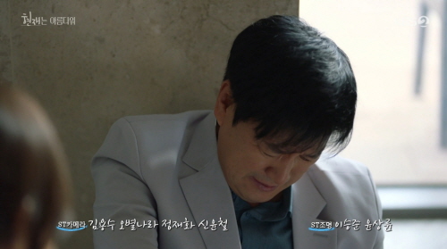 현진헌은 병원 복도에 주저앉습니다. 극의 위기감 고조를 위한 장치이겠지만 간암 선고를 받은 아내 앞에서 할 행동은 절대 아닙니다. 게다가 수십 개 체인을 거느린 요식업 사장으로 산전수전 다 겪은 50대 인물의 행동이라기엔 설득력이 떨어집니다. 보통 암 환자의 가족은 환자 앞에서 최대한 슬픔이나 절망을 표현하지 않습니다. 제가 말기암 환자의 가족이라 잘 압니다.