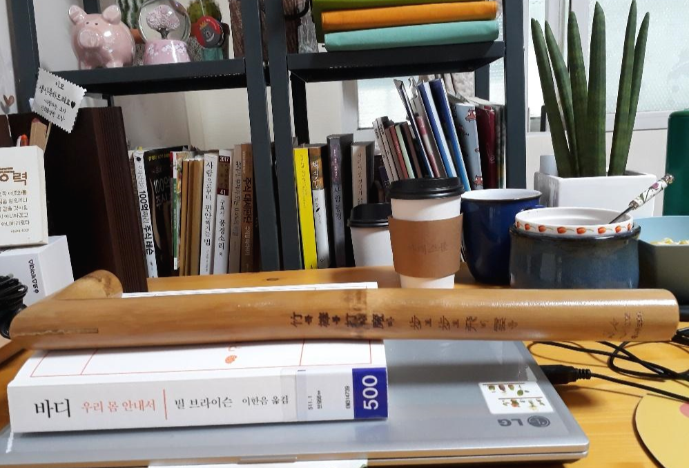 기역자로 생긴 대나무 봉의 피부에 닿는 부분은 공기가 차도록 패어있다.