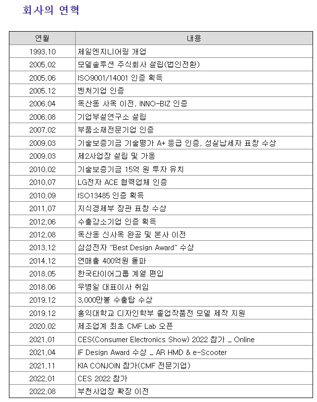 2022년부터 제조업 외주화의 최종 단계인 CM(Contract Manufacturing) 부문을 신규 사업부로 승격하여 제조업 밸류체인 수직계열화를 완성한 One-Stop Manufacturing Solution 기업으로 성장하고 있습니다.