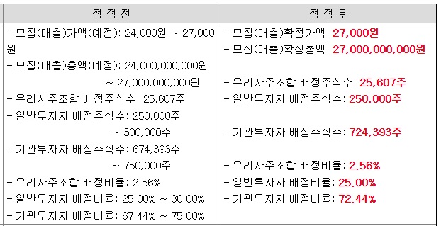 확정공모가가 희망공모가 상단인 27,000원이고 최소 수량 10주를 청약한다면 청약증거금은 135,000원이 필요합니다. 수수료는 1500원이고 청약 당일 비대면 계좌 개설해도 청약할 수 있습니다.