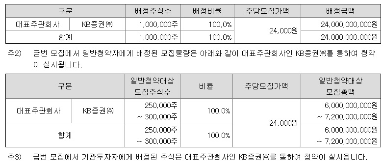 * 공모주 물량 총 1,000,000 주 중 일반 청약은 250,000주로 균등 수량 50%, 비례 수량 50%입니다.