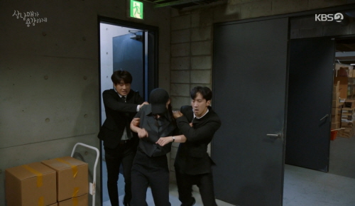 이때 전기 충격기를 갖고 나타난 스토커가 보디가드들을 쓰러뜨린 후 이상준에게 다가갑니다.