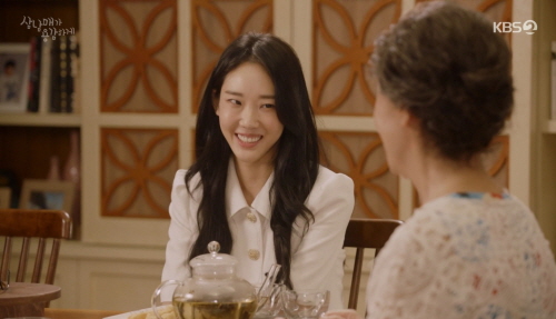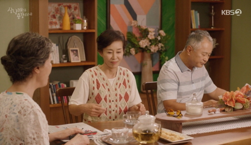 김태주 남동생 김건우는 정형외과 의사로 여자 친구 남유리와 연애중입니다. 남유리는 어른께 잘 보이려고 백화점 반찬 코너의 음식을 바리바리 사들고 와서 음식을 차립니다. 그 음식들은 엄마카드 찬스를 썼다네요. (저만 한심한가요~) 미래의 시어른이 될지 안될지 모르는 사람들은 우아하게 차를 마시는데 유리는 부엌에서 일합니다.