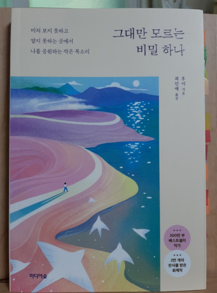 안녕하세요? 책 소개 하는 친구 올리브나무입니다. 『그대만 모르는 비밀 하나』는 300만부 이상 팔린 베스트셀러 작가 ‘후이’의 삶에 대한 지혜가 담긴 에세이입니다. 예민한 편이고 여름과 여행을 좋아한다는 후이님은 ‘과거에 침잠된 일들을 기억하고 기록해서 이야기 속에 인생이 있다는 사실을 증명하고자’ 합니다.