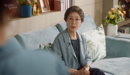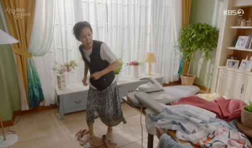 유정숙은 시어머니가 들어오자 바로 고양이 앞의 쥐가 되어 쩔쩔 맵니다. 35년 동안 한 집에서 저런 상태로 살면서 우울증이나 암에 안 걸린 게 신기합니다.