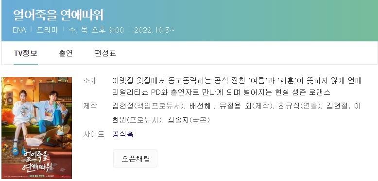 | 얼어죽을 연애따위 2회 줄거리 3회 예고 코리안 스탠다드 로코 신 (12) | 2022.10.07 |