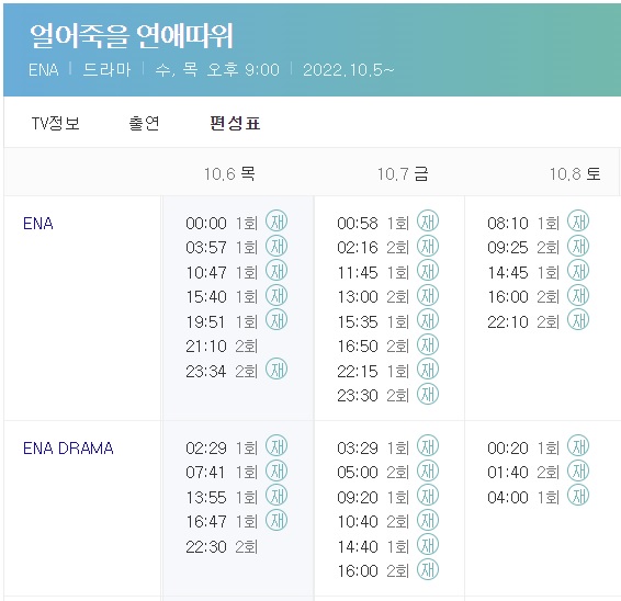 얼어죽을 연애따위 재방송 시간표