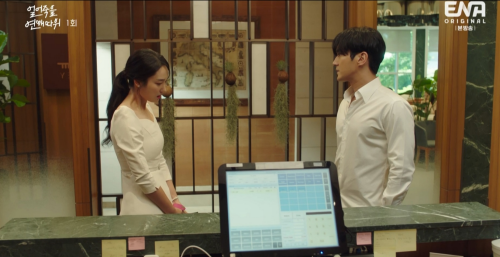 섹시 도발 컨셉으로 ‘사랑의 왕국 시즌 2’ 촬영장에 도착한 구여름은 스테프들과 인사를 나누죠. 프로그램 출연자들이 최종 커플과 사진 찍는 시간. 올 블랙 양복을 차려입은 박재훈이 구여름과 거리를 둔 채 마주봅니다. 스토리는 시간을 되감아 이 장면이 있기 전 시간으로 돌아갑니다.