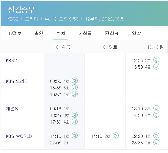 진검승부 재방송 시간표