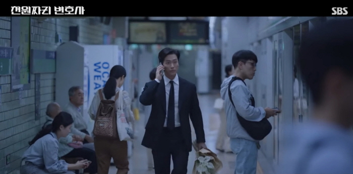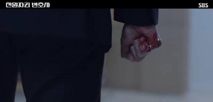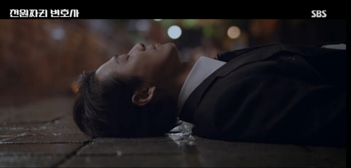 지훈은 자신의 한계를 뼈저리게 느끼며 이주영 변호사와 갔던 노포 야외 테이블에 찾아가 혼자 앉습니다. 마침 이주영 변호사가 그런 지훈 옆에 앉지만 만사가 피곤한 지훈은 이주영을 피해 자리를 뜹니다. 지훈 뒤에 조금 떨어져서 따라 걷던 주영은 비오는 거리 바닥에 눕는 지훈 옆에 따라 눕습니다. 그 모습에 지훈이 웃음을 띱니다.