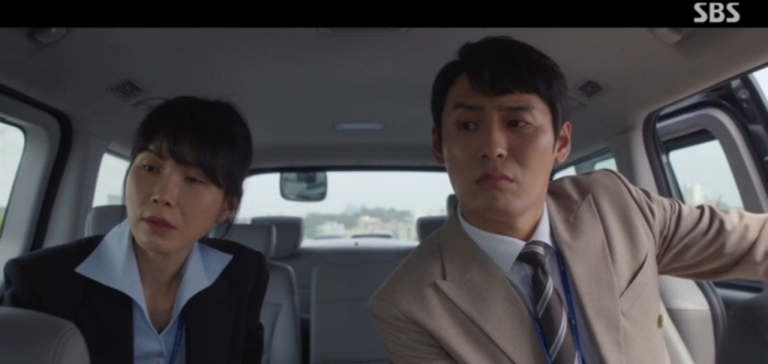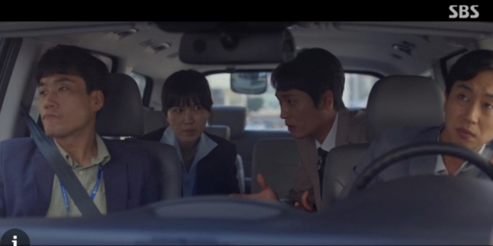 나예진과 서민혁은 위치 추척기를 통해 사기꾼 조직의 모임 장소를 급습할 수 있었는데요. 경찰의 출동이 늦어져 놓칠 판입니다. 이때 천지훈이 뙇! 도주 차량의 앞길을 중고차로 막아섭니다. 사무장이 사기 당해서 샀던 바로 그 차입니다.