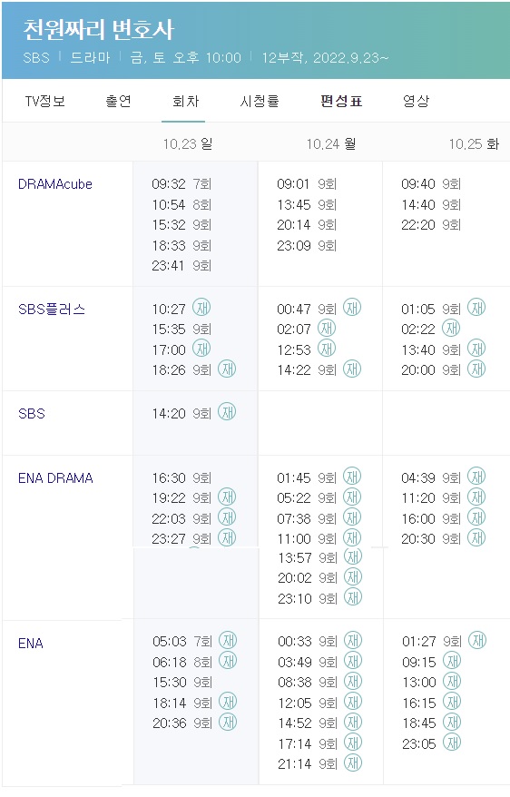 천원짜리 변호사 재방송 시간표
