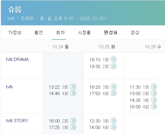 슈룹 재방송 시간표