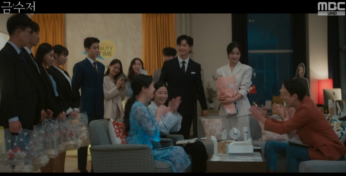 황태용은 자신의 망상이 컸다며 사과하고 자리를 뜹니다. 오여진은 금수저의 비밀을 아는 사람은 자신뿐이라며 이승천을 다독입니다.