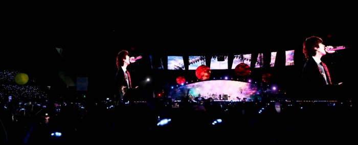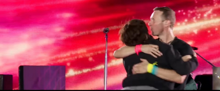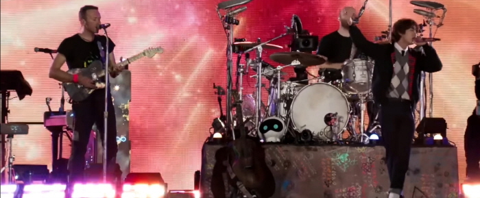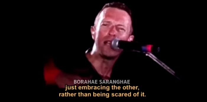 내 인생과 우리 밴드 역사에 정말로 축복같은 일이 있었는데, 약 2년 전에 누군가 우리에게 한국의 보이밴드와 작업해야 한다고 제안한 것이었죠. 그러나 당시 저는 인간이기에 종종 그렇듯 편견을 갖고 있었습니다. 얼마 지난 후 이런 생각이 들더군요. ‘왜 나는 그 작업을 두려워할까? 단지 그들이 다르기 때문에, 다른 음악을 만들기 때문에?’ 그리고 우리는 그들과 작업하기로 했습니다. 우리가 함께 만든 곡은 ‘My Universe’였죠. (관객들 함성) 결과적으로 우리가 밴드로서 경험한 가장 재미있고 만족스런 관계 중 하나가 되었습니다. 그리고 (마이 유니버스 작업을 통해) 나와 다른 타인을 두려워하는 대신 포용하는 것에 대해 많은 가르침을 얻게 되었습니다.