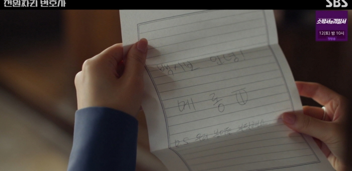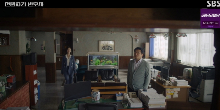 사무장님은 세탁소에서 일하다 문자 한 통을 받고 크게 놀라며 급히 사무실로 갑니다. 천지훈이 떠난다는 인사를 남기고 종적을 감춘 겁니다. 백마리에게도 장난스럽게 붕이들(붕어들) 부탁을 했네요. 기껏 범인을 찾아놓고 종적을 감춘다고요? 왜요? 10회에서 끝났어야 했던 드라마였던가요? 줄거리 소재 고갈로 이렇게 스피드 떨어지는 우회 도로를 가는 건가요?