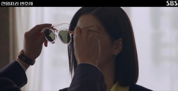 천지훈은 쓰고 있던 썬글라스를 벗어 백마리에게 씌워주며 햇빛이 강하니까 쓰고 다니라고 합니다.