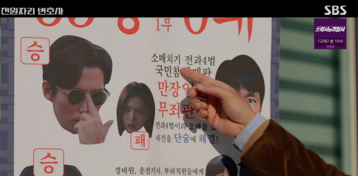 그리고 시골마을에서 무료 법률 상담도 해줍니다. 진짜 변호사인지 의심하는 사람들에게 자신의 변호 이력을 홍보하기도 하구요. 드라마 전개상 전혀 필요 없는 사족으로 깔끔한 구성에 흠이 되지만 낭궁민 배우의 넘사벽 능청 연기로 재미있었습니다.