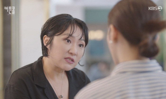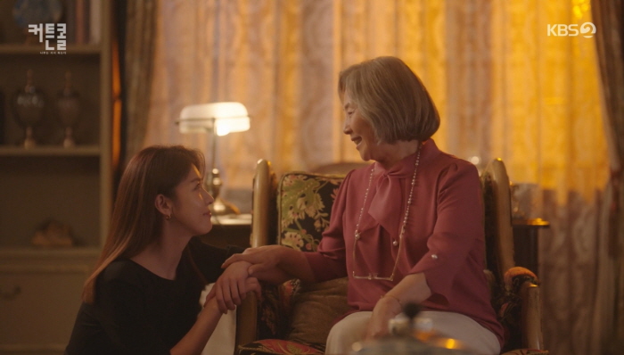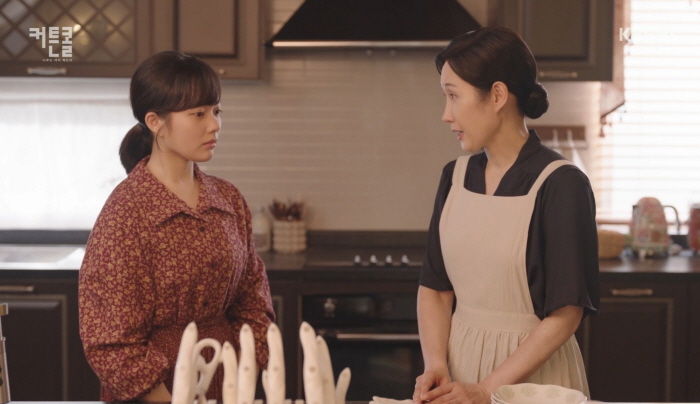 서윤희는 자금순이 신뢰하는 윤정숙(입주 가사 도우미)을 도와주겠다고 하지만 윤정숙은 서윤희의 손을 잡으며 말립니다.
