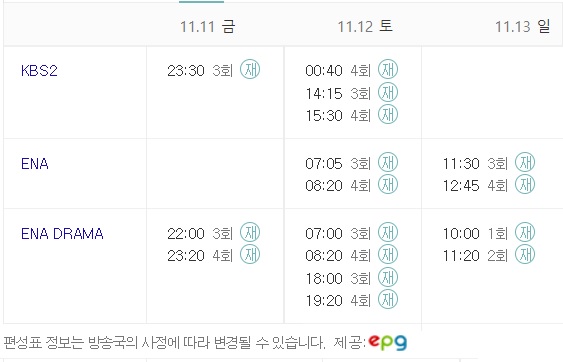 커튼콜 재방송 시간표