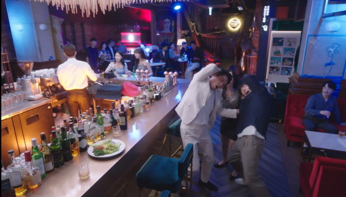 그런데 어떤 여자가 박세규를 아는 채 하며 다가옵니다. 박세규는 기억이 나지 않지만 아는 채를 하는데 여자는 박세규에게 주먹을 날리고 이어 박세규와 강하늘의 머리카락까지 쥐어뜯습니다. 소란의 주인공으로 바에서 쫓겨난 두 사람.