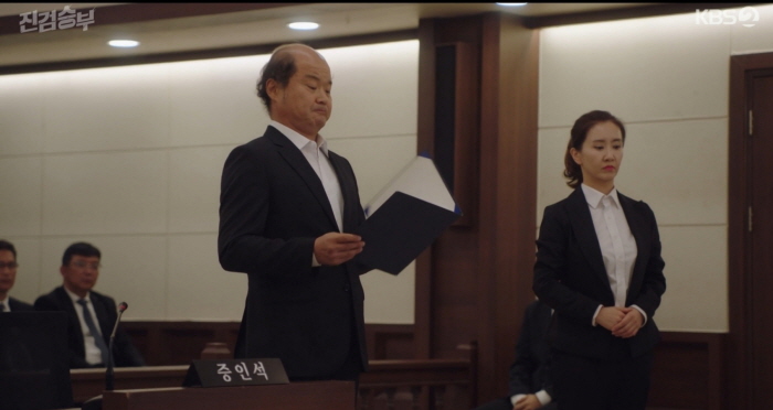 서현규는 오도환이 증인으로 출석할 거라 예상하며 여유만만합니다. 그러나 오도환과 함께 등장한 박재경 검사! 모두 죽은 줄 알았던 박재경 검사가 살아서 증인으로 등장한 겁니다. 진정은 드마마 속 아군과 적군과 시청자들을 모두 속였던 겁니다. 저는 이런 반전은 아니라고 봅니다. 치밀하게 계산할 줄 아는 시청자들은 눈치 챌 수 있을 정도의 떡밥을 뿌려 놓는 반전이 정말 멋진 거죠. 저같이 계산하지 못하는 시청자는 아! 그게 떡밥이었구나!라며 작가에게 기분 좋은 리스펙을 보내는 겁니다.