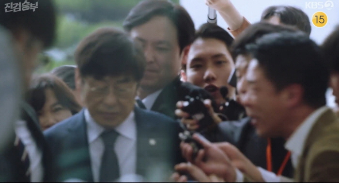 긴급 체포 영장을 받은 서현규는 법정에서 스스로를 변호합니다. 증인 김태호에게 자신은 이장원 차장의 죽음을 자살로 위장하라고 직접 말한 적이 없다고 말합니다. 자신에게 충성심을 보이려는 김태호의 독단적 행동이었다고요. 버벅거리는 김태호. 유능한 검사 출신인 김태호가 버벅거리다니.