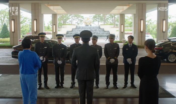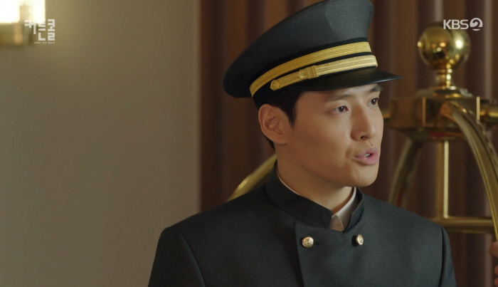 김승도 이사는 유재헌이 20분이나 자리를 비웠다며 포터 서비스할 능력도 없다고 몰아세웁니다. 손님들 눈에 안 보이는 세탁실로 내려가라고 지시합니다.