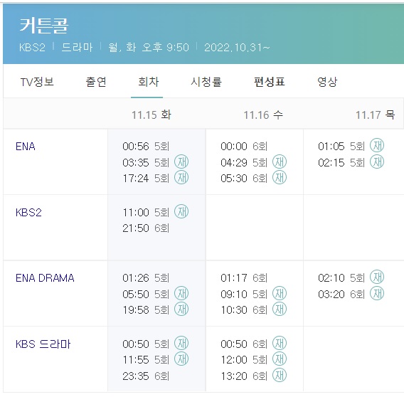 커튼콜 재방송 시간표