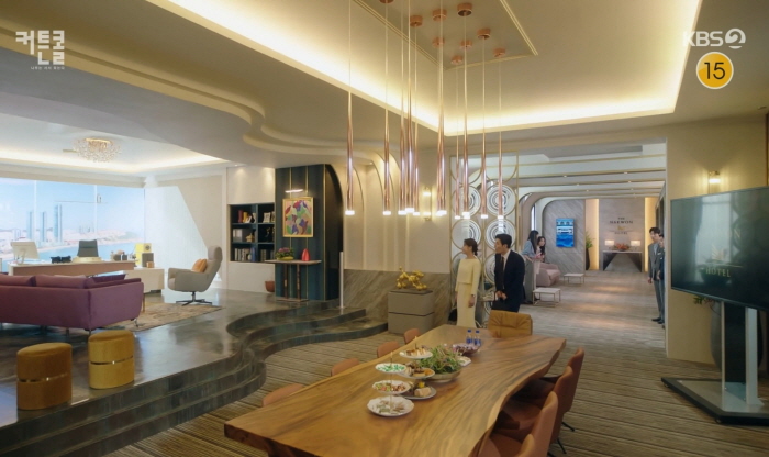 배동제는 호텔 현관에서 포터 서비스 대기하는 유재헌을 발견하고 구태여 유재헌에게 짐을 옮기게 합니다. 배동제의 VVIP룸으로 쇼핑백들과 물건들을 옮기는 유재헌.