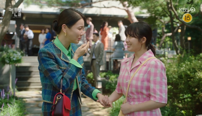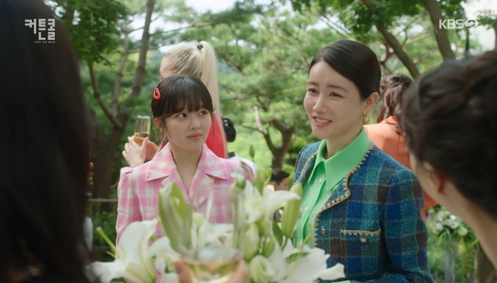 서윤희는 박세준의 아내 현지원에게 다가갑니다. 함께 현지원의 모임에 참석했다가 현지원이 따돌림 당하는 상황을 보게 됩니다. 전직 아나운서인 현지원이 친구들이 영어로 대화해서 은따(은근 따돌림)가 된다는 설정은 개연성이 부족합니다. 서윤희는 현지원 친구들에게 “영어로 대화하며 한 사람을 따돌리는 행동은 예의도 없고 품위도 없다”고 사이다 참교육을 시전합니다.