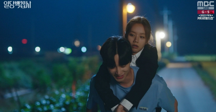 늦은 밤 외딴 시골이라 보험 출동도 하지 않습니다. 동주가 다리 아파하자 업어 주는 태희. 태희와 동주는 고인의 집에서 하룻밤을 지새우게 됩니다.