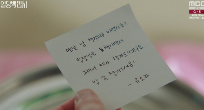 김태희가 탁청하의 연락을 일부러 받지 않자 탁청하는 일당백에 심부름을 의뢰합니다. 의뢰 내용은 함께 점심 먹기. 짬뽕 그릇을 앞에 두고 마주 앉은 김태희와 탁청하. 이 모습을 우연히 백동주가 목격하고 실망해서 뒤돌아 갑니다. 김태희는 청하에게 다시는 연락하지 말라며 짬뽕을 먹지도 앉고 일어섭니다.