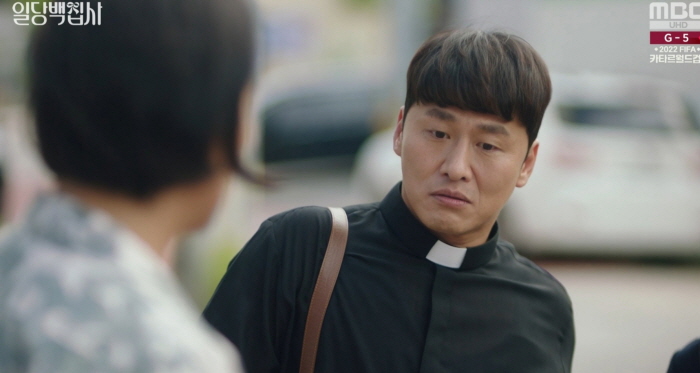 백동주의 외삼촌 미카엘 신부는 백동주가 독립한 거주지가 있는 일당백 건물로 찾아옵니다. 백동주에게 축복기도를 하고 싶다고 하지요. 미카엘 신부는 빈센트(심부름센터 일당백 사장)의 오토바이를 따고 성당으로 돌아갑니다.