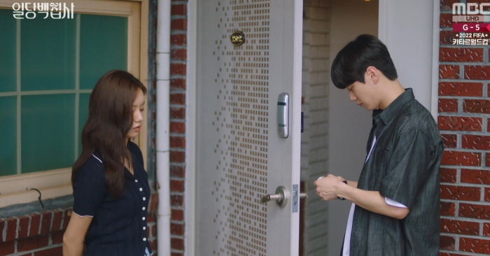 김태희는 백동주의 현관 비밀번호가 너무 단순하다며 비밀번호를 바꾸게 합니다. 건전지도 갈아 끼워주며 살뜰히 챙깁니다.